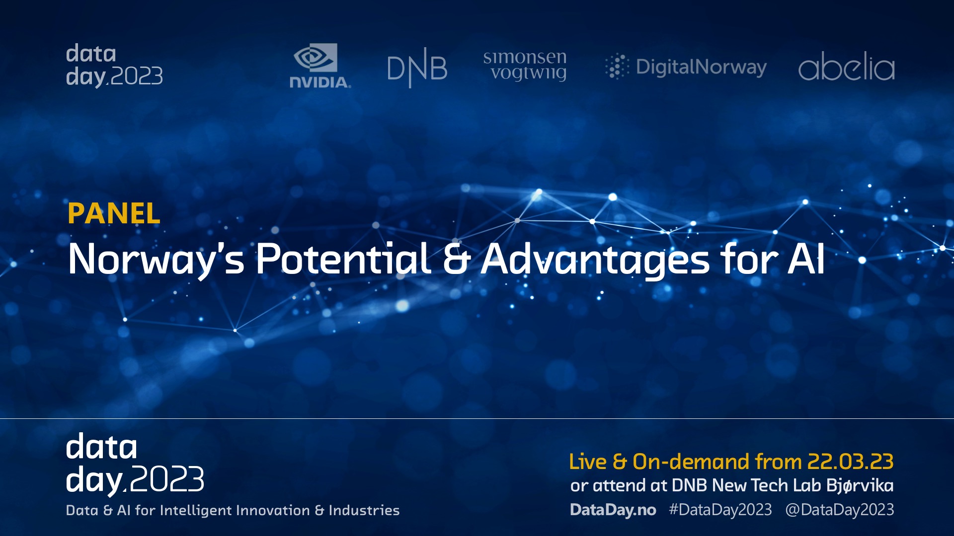 35+ Speakers on Data & AI: NVIDIA, DNB, Simonsen Vogt Wiig, Digital Norway, Telenor Group, Schibsted, ITERA, Microsoft, Deloitte, NTNU, Autostore, Silo AI, Ruter, Celsia, Smart Innovation Norway, Cluster for Applied AI, Kongsberg Digital, Norwegian AI Research Consortium, Skanska, Wheel.me, Uni of Bergen, Norwegian Cognitive Center, Nordic Quantum Computing Group, Alpha Venturi, Teknoinvest, Østfold Uni College, ATOMIQ, StartupLab, SINTEF, Kristiania University College and more